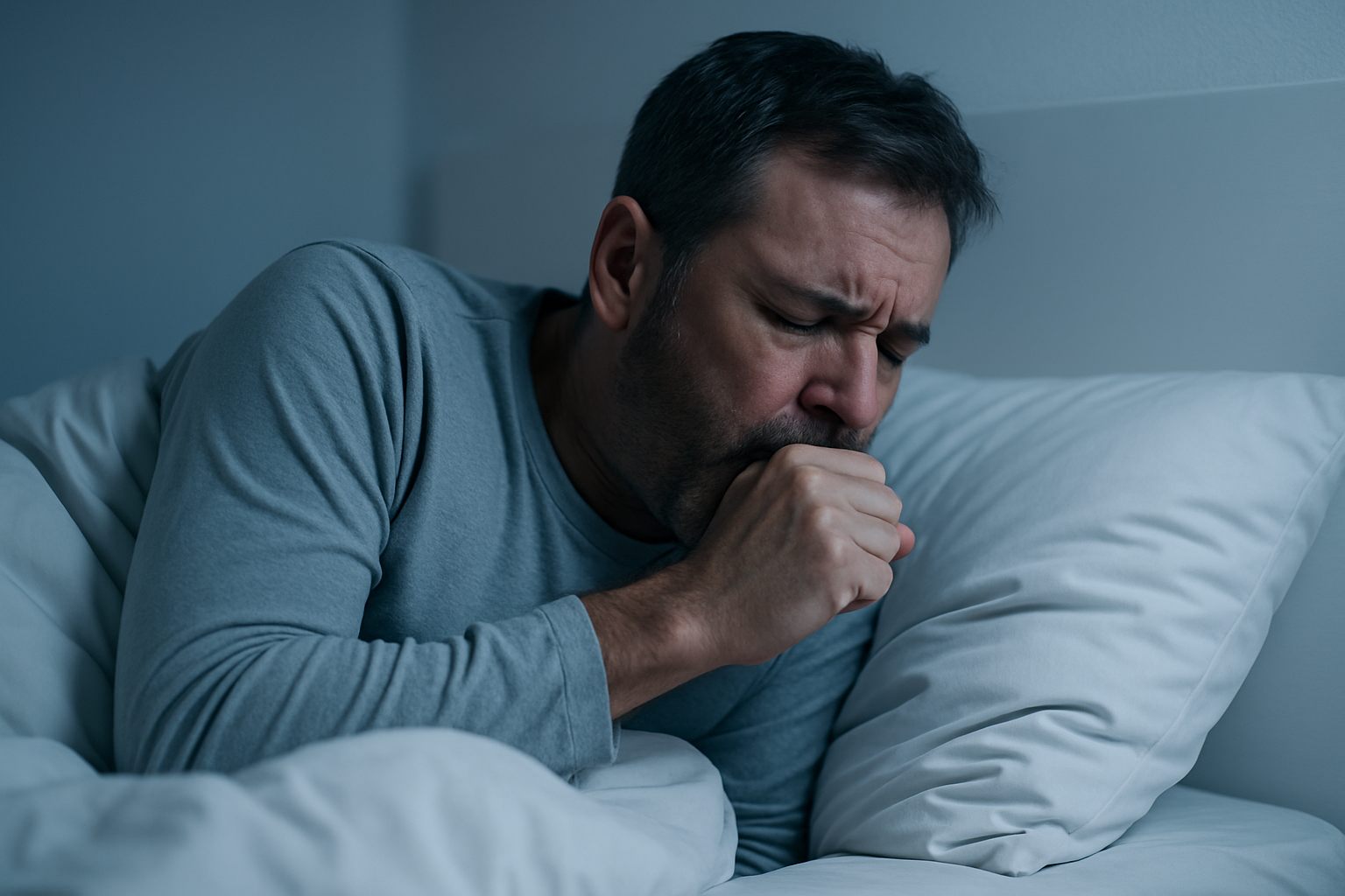 마른기침의 흔한 원인 중 하나는 위산이 식도를 타고 역류하는 역류성 식도염입니다. 특히 밤에는 눕는 자세로 인해 위산이 쉽게 올라와 식도를 자극하게 됩니다. 이때 기관지나 후두가 자극을 받아 마른기침이 유발되며, 흔히 "기침이 심해서 잠을 깨요"라는 호소로 이어집니다.