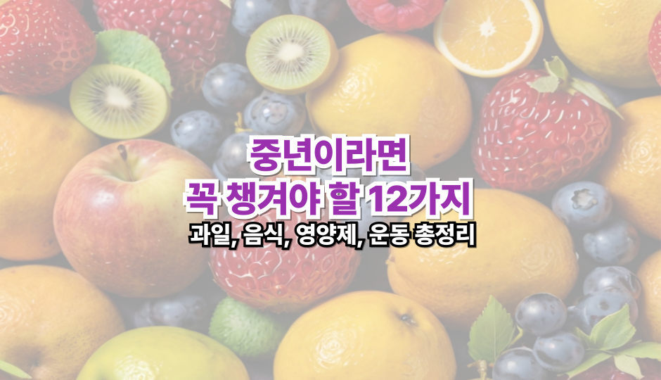 요즘같이 기후 변화가 많은 때엔 중년이 되면 몸의 신호가 하나둘씩 달라집니다. 예전 같지 않은 회복력, 쉽게 피로해지는 몸, 이유 없는 소화불량과 잦은 통증까지. 이 시기에는 잘 먹고, 잘 움직이며, 잘 보충하는 습관이 필수입니다. 이 글에서는 중년이라면 반드시 챙겨야 할 과일, 음식, 영양제, 운동 루틴까지 총 12가지를 분야별로 정리했습니다. 오늘부터 하나씩 실천해보세요. 작은 변화가 건강한 노년을 만듭니다.