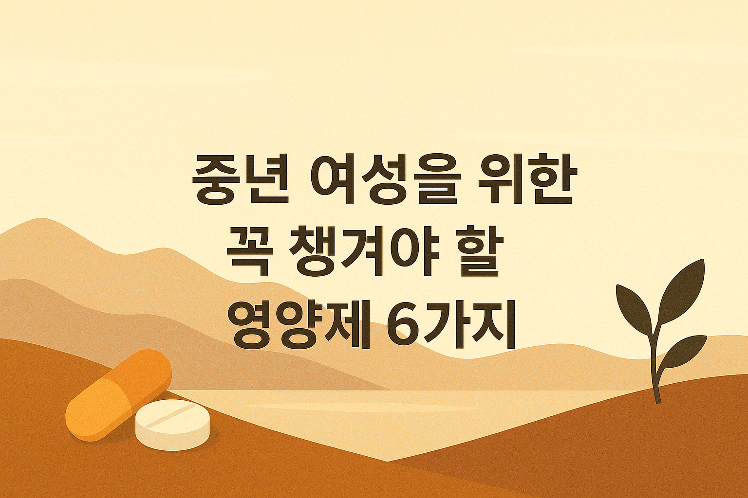 40대 후반부터 60대 초반까지, 여성의 몸은 큰 전환기를 맞이합니다. 폐경, 갱년기 증상, 호르몬 변화, 골밀도 저하, 감정 기복 등 다양한 신체적·정신적 변화가 동시에 찾아오죠. 이럴 때, 식단만으로는 부족한 영양을 채워주는 것이 바로 ‘영양제’입니다. 하지만 수많은 영양제 중에서 무엇을 어떻게 골라야 할지 고민된다면, 이 글이 도움이 될 거예요. 지금부터 중년 여성에게 꼭 필요한 대표 영양제 6가지를 소개합니다.